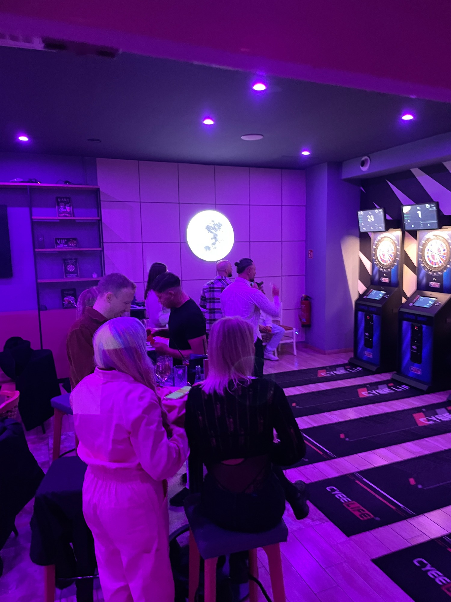Schnappt euch ein paar Pfeile, bestellt euch einen Drink und genießt einen gemütlichen Abend im Moonwalk.